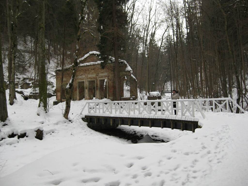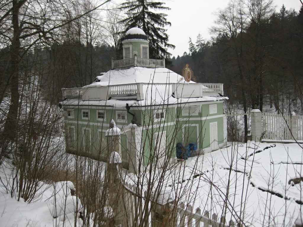 Die Landschaftskomposition ergänzten weitere architektonische Objekte wie Pavillons, das Badehaus und kleine "Denkmäler ", die mit Versen auf die